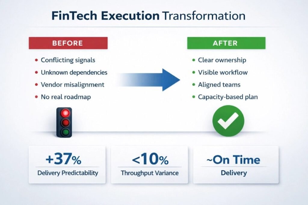 We helped leadership gain real visibility into execution, align teams and vendor dependencies, and stabilize delivery.